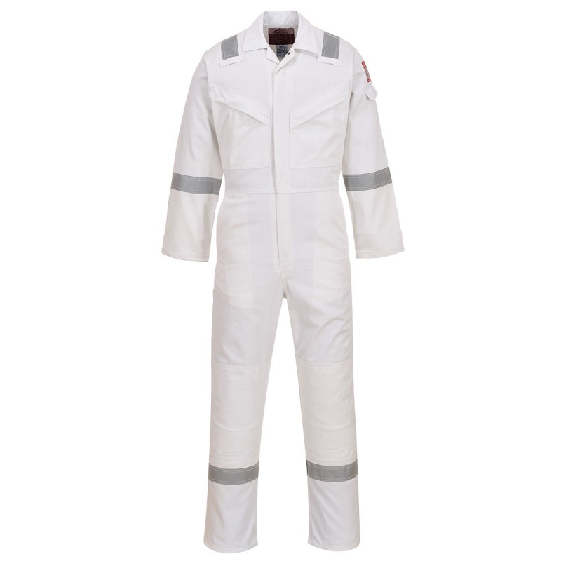 Cette combinaison est parfaite pour l'industrie pétrolière. Fabriquée en tissu retardateur de flamme avec des bandes rétroréfléchissantes pour plus de visibilité. Ce vêtement survivra aux conditions extrêmes des plateformes offshores. Conforme aux normes européennes en vigueur cette combinaison inclut des bandes rétro sur les épaules, les bras et les jambes, une fermeture laiton à glissière centrale à double curseur, 2 poches poitrine.