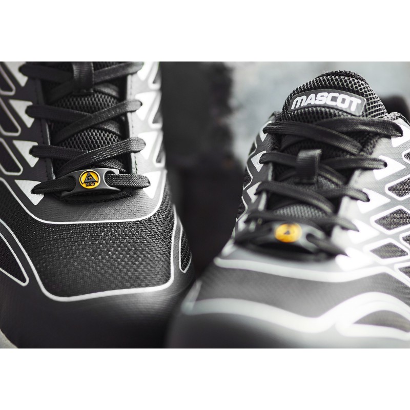 La partie avant de la chaussure se plie avec souplesse en même temps que le pied. Sans métal. Revêtement extérieur en textile ultrarésistant. Coque en composite. Intercalaire anti-perforation en textile technique. Semelle intérieure, à la fois douce et souple et qui absorbe les chocs. Semelles intérieures sont amovibles. Semelle intérieure en Phylon. Semelle extérieure en caoutchouc. Enveloppe protectrice TPU au talon. Semelle ultrarésistante et non marking ne déteignant pas. Certification ESD, EN 61340-4-3: 2002