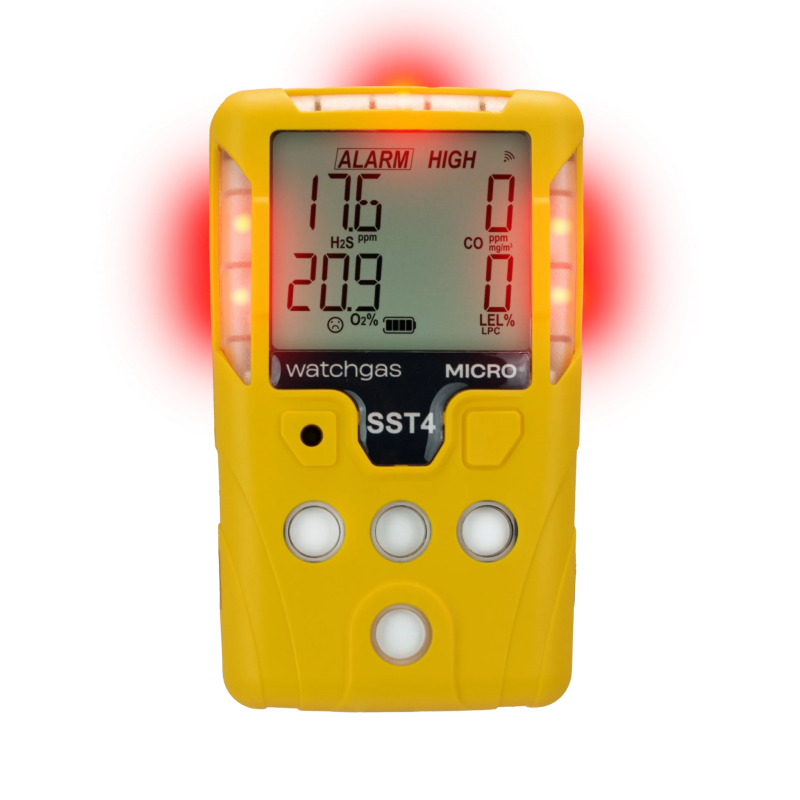 Le SST4 Micro est équipé d’un écran LCD rétroéclairé qui permet une lecture claire des concentrations de gaz, même dans les environnements sombres ou difficiles. Les alarmes sonores, visuelles et vibrantes assurent une alerte immédiate en cas de danger.
