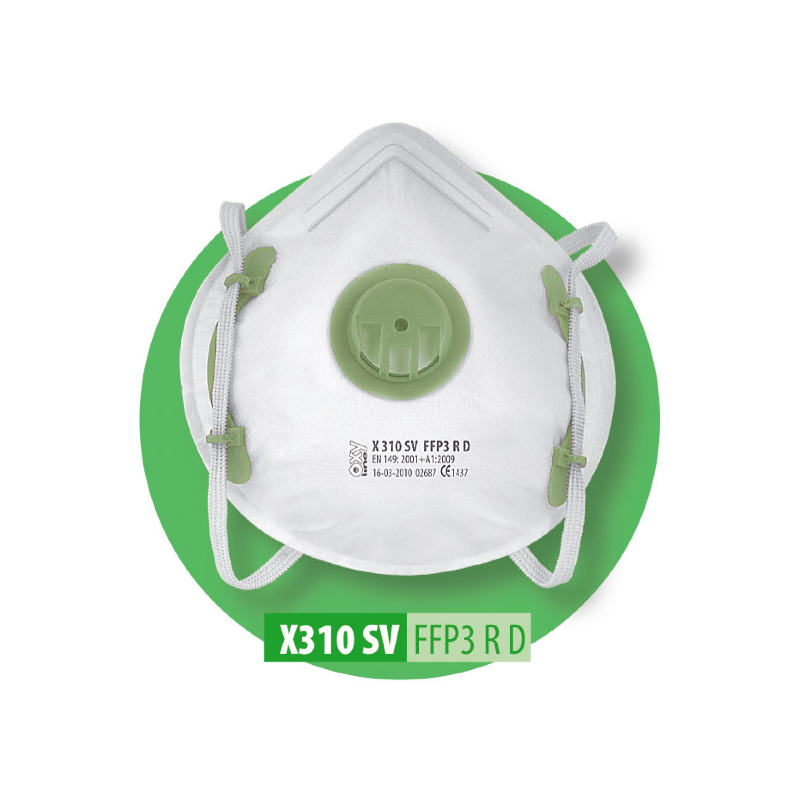 Les demi-masques de classe FFP3 sont destinés à la protection du système respiratoire contre l’action nocive des poussières, des aérosols de particules solides et des aérosols liquides, où la valeur moyenne d’exposition