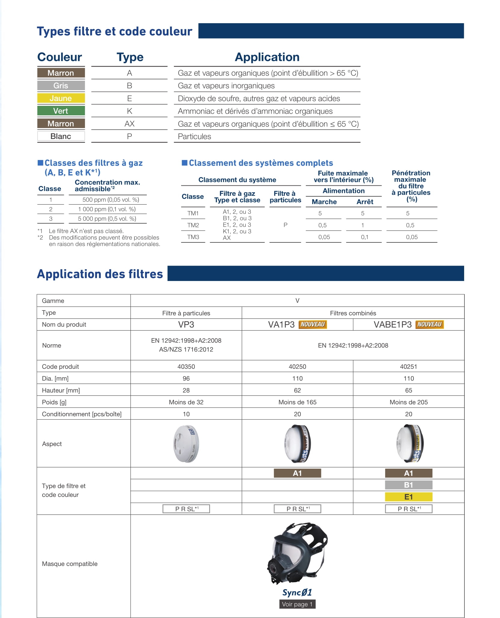 Filtre A1P3 pour masque à ventilation assisté SYNC01CP